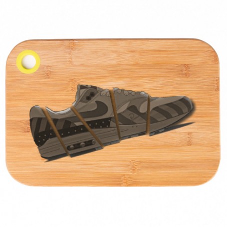 The Air Max 1 Parra cutting board is made of bamboo. Thanks to its natural properties, bamboo is a non-porous material which absorbs liquids, odors and stains less easily. This makes the board more resistant to bacteria and very easy to clean thanks to its sleek finish.